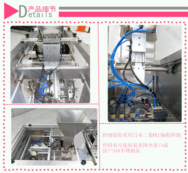 2、整機外觀與成型部份均采用不銹鋼制作,清潔衛生,符合食品衛生標準;