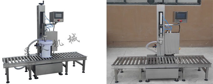 電子稱重式灌裝機-醬料稱重灌裝機適用于5~25公斤劑量各種容器的自動計量灌裝,如塑料桶、塑料罐、鐵桶等。常見灌裝r容量有:10公斤桶、20公斤、15升桶、20升桶、25公斤。醬料稱重灌裝機、潤滑油稱重灌裝機是星火的專利產品,可灌裝辣椒醬、豆瓣醬、芝麻醬等高粘度產品及白酒、醬油、醋、調味品、植物油、糖漿、礦泉水等食品類液體產品及日化、農藥化工等行業的各類液體產品。